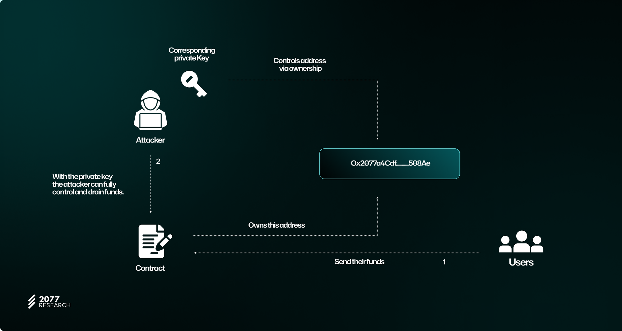 One of the potential abuses of such collisions is that a malicious actor may take advantage of users by masquerading as a contract while maintaining a private key. This could be employed by a dishonest party to deploy a contract account—whose access policy is superseded by an EOA's private key—to attract users’ funds and then steal them at a later date.