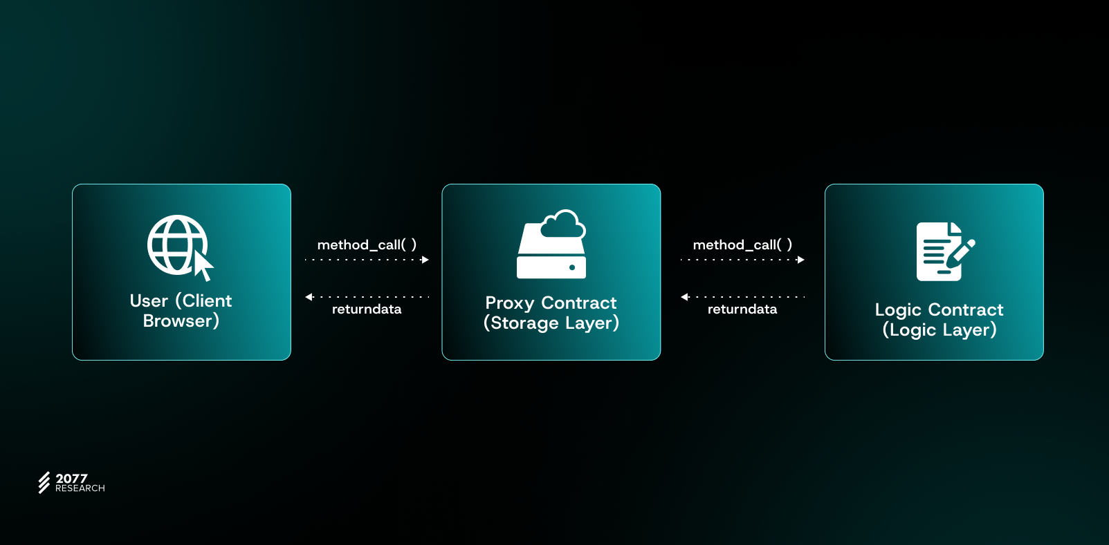 However, the popularity of “proxy contracts” presents a small wrinkle to ERC-7512’s approach to verifying smart contract audits. For the uninitiated, a proxy contract delegates the execution of one or more functions to another contract instead of executing the logic itself (using Solidity’s DELEGATECALL feature); the main use case for proxy contracts is to enable contract upgrades without needing to migrate old state or deploy a new contract and initialize a new state.