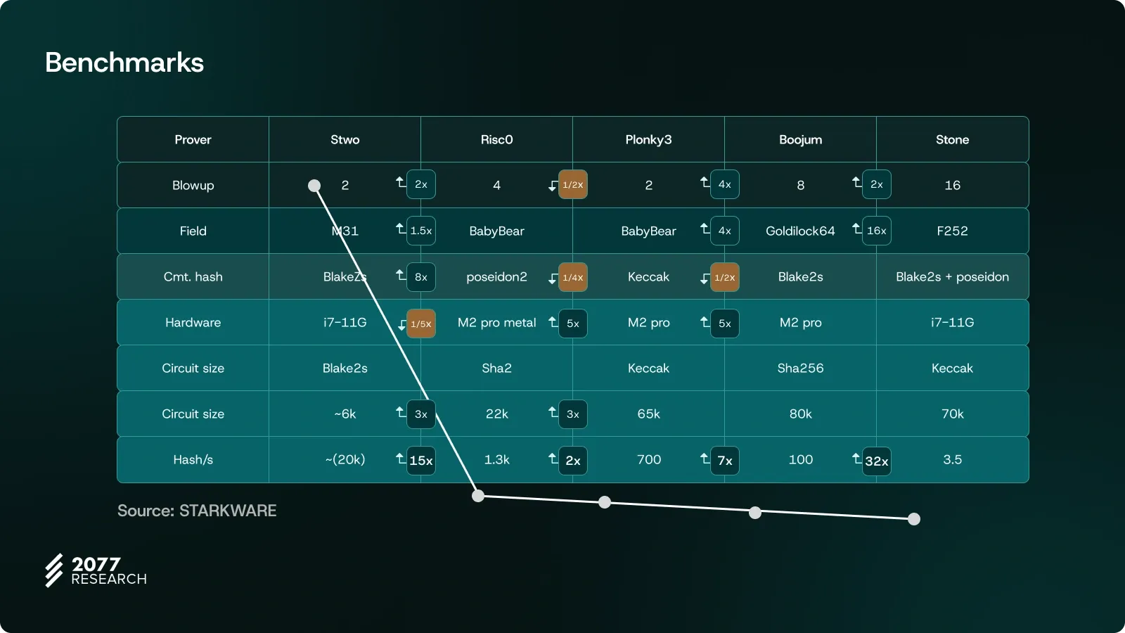 In the Prover-Verifier analogy we referenced earlier, it is generally fair to say that there is usually a computational balance between the two actors. While the ability of proofs required to make the STF verifiable to validate multiple things simultaneously offers significant advantages for the Verifier, it also indicates that generating such proofs to ensure the correctness of execution will be relatively challenging for the Prover. With Ethereum's current speed, an Ethereum block needs to be proven in under 4 seconds. However, even the fastest EVM Prover we have today can only prove an average block in approximately 15 seconds.[1]