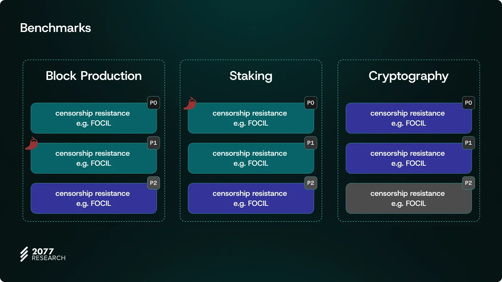 In his presentation, Justin Drake emphasized that Ethereum has learned significant lessons over these five years in critical areas such as MEV understanding, breakthroughs in SNARK technologies, and retrospective awareness of technological mistakes. The designs informed by these new learnings are categorized into three main pillars: Block Production, Staking, and Cryptography. The following visual summarizes these designs and the proposed roadmap: