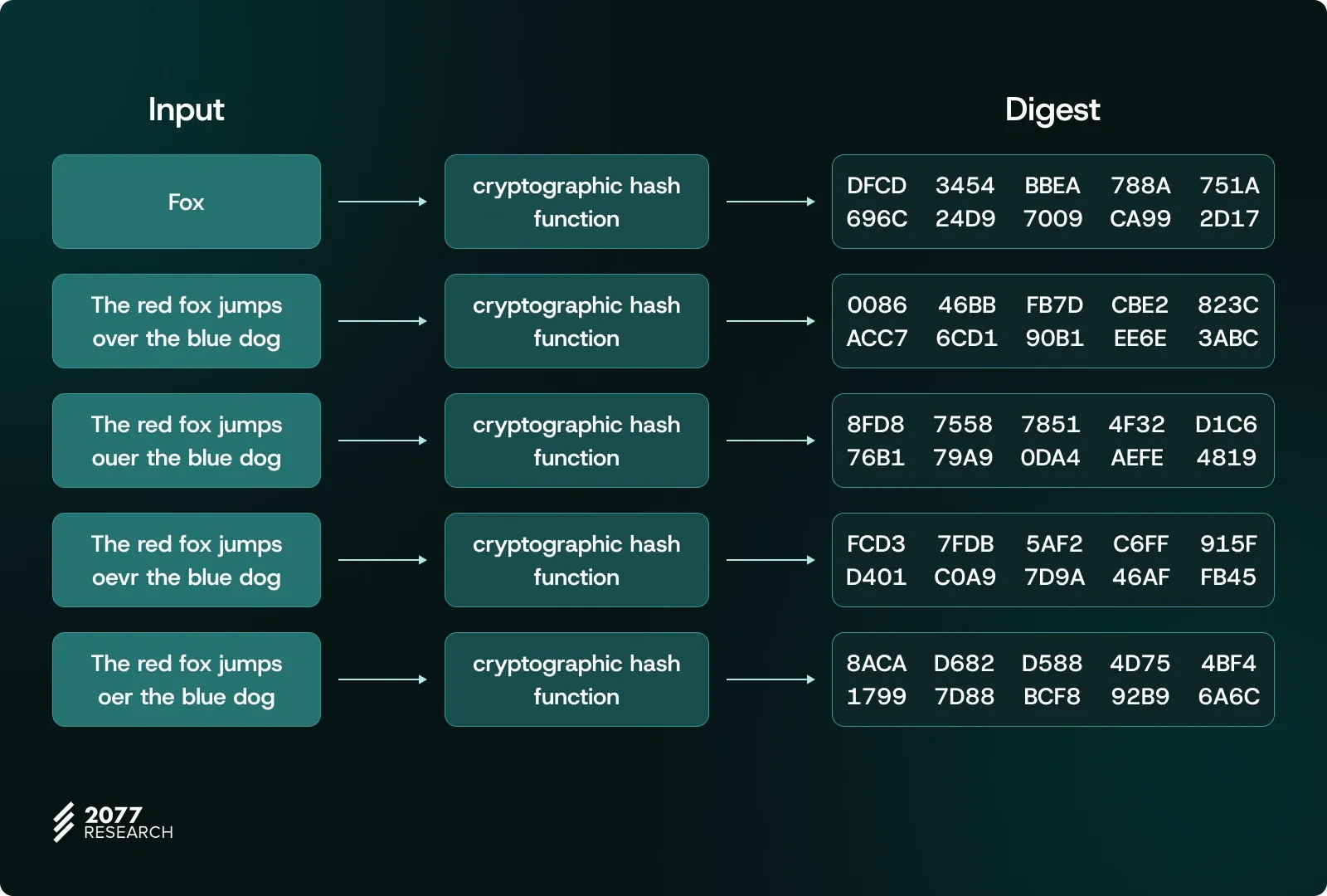 - Uniqueness: Even a small change in the input produces a completely different output. Thus, a specific input maps to a practically unique output.